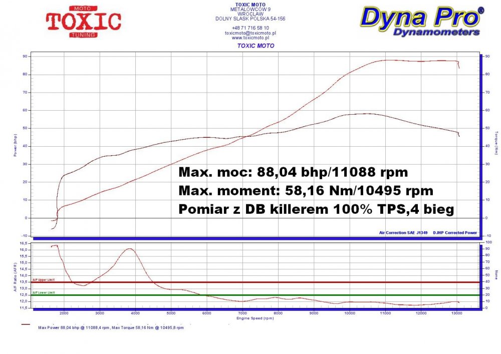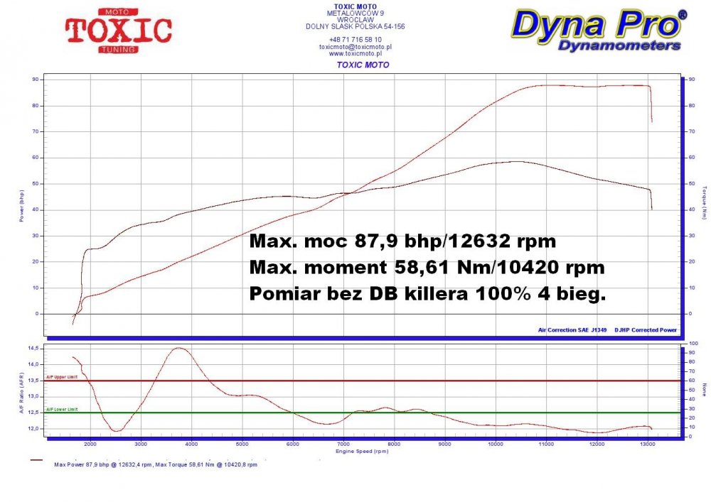 Bardzo ciekawe wyniki pomiarów Suzuki GSR 600 z filtrem K&N powietrza i końcówkami wydechu Yoshimura. Na miejscu właściciela szybko poprawiłbym te parametry!