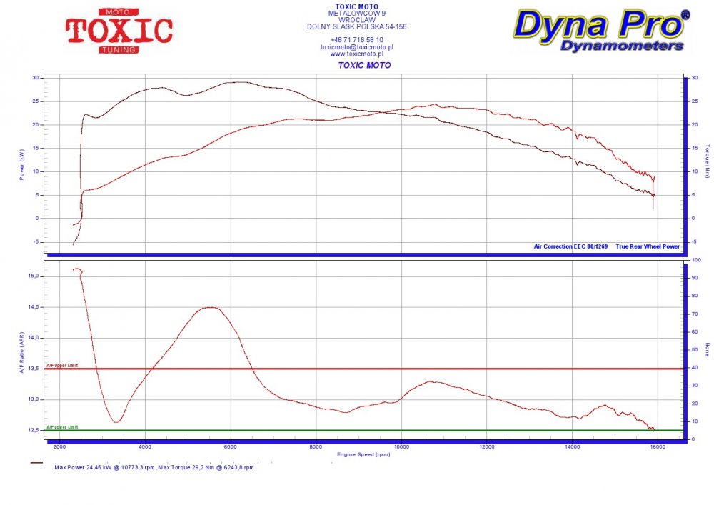Według polskiego prawa to niemożliwe: Jeśli kierowca ma kategorię prawa jazdy A2 to może z grubsza jeździć tylko jednośladami o mocy nie większej niż 35 kw i zblokowanymi z mocy wyjściowej do 70 kW. Znaczy to tyle, że młodemu kierowcy nie danym będzie jazda zgodnie z prawem polskim na motocyklu o mocy większej wyjściowej niż ok.95 kM. Dobrze czy źle? Kolejny raz okazuje się, że w państwie polskim twardogłowi wiedzą lepiej jak powinna wyglądać rzeczywistość kreując ją idiotycznymi przepisami. Poniżej publikujemy wykres mocy motocykla, którym zgodnie z prawem niemieckim młody kierowca nie zagrażając nikomu ani sobie może poruszać się po publicznym drogach.. Blokowanie potwierdzone jest stosowna nalepką homologacyjną.