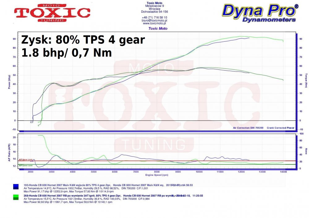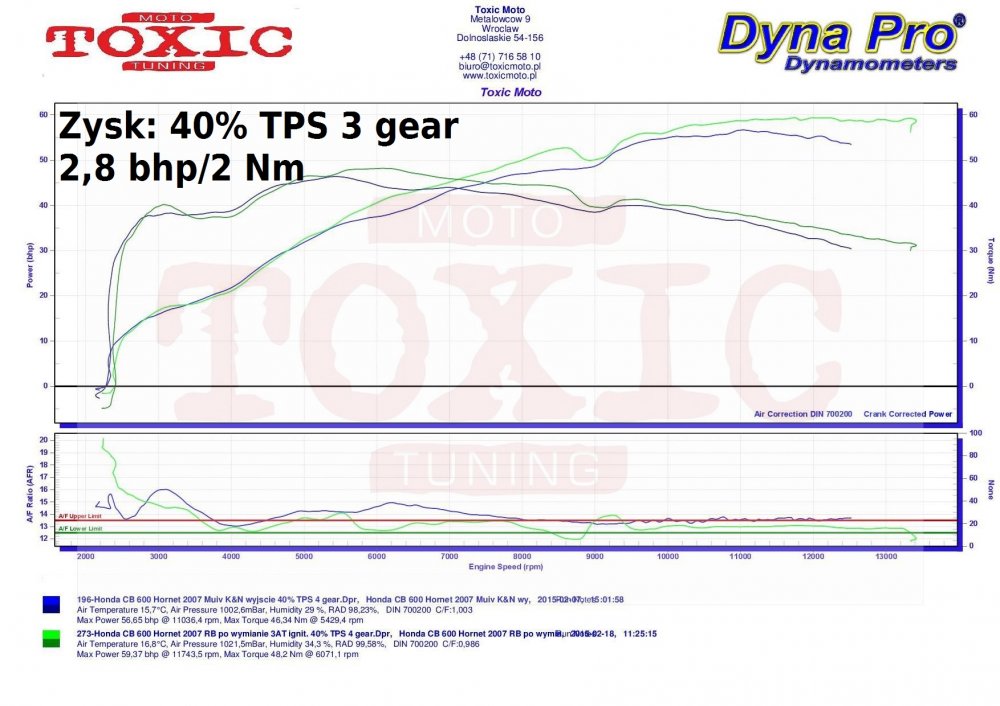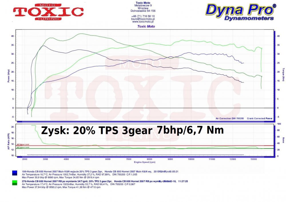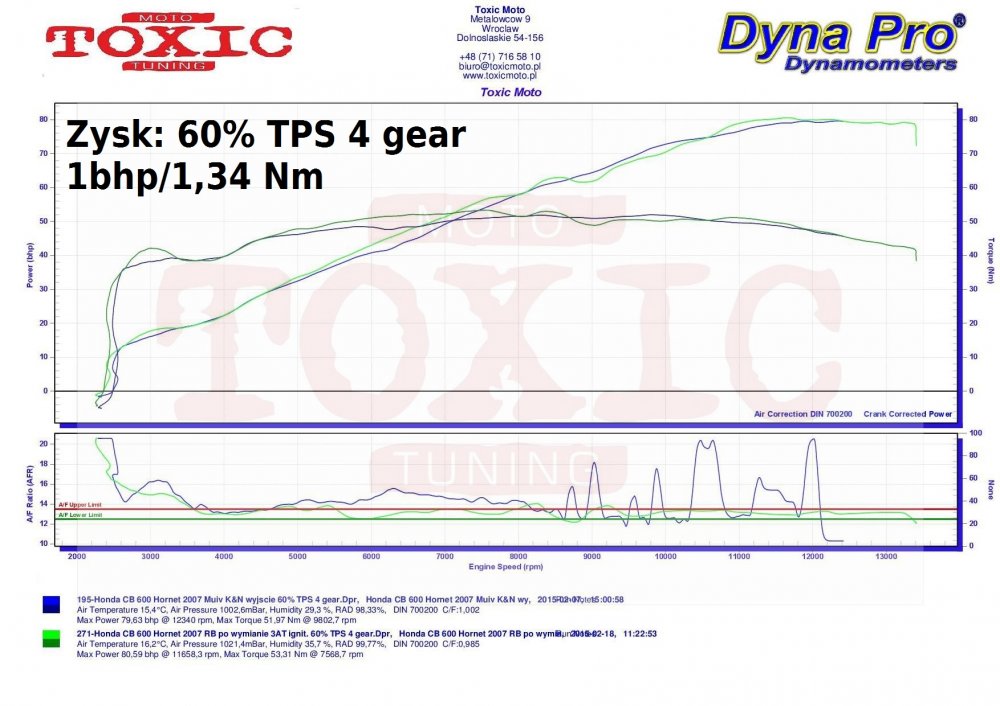 Pomiar mocy Honda CB 600 Hornet 2008 hamownia Toxic Moto