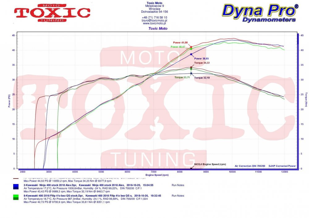 Z pomiarów jednoznacznie widać, że Kawa jest silniejsza. Ci, którzy wybiorą przygotowanie motocykli na tor zgodne ze specyfikacji FIM klasy 300SS wiedzą, że przywileje Kawy zostały ograniczone w zakresie maksymalnych obrotów : 10 tysięcy ( w R3 mamy możliwość pracy do 13 tysięcy ). W R3 z 2018 roku ponadto jest możliwość wymiany wałka ssącego i zębatki wałka na te, które były montowane w 2017 roku.