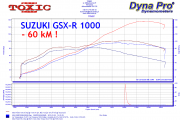 Klient GSX-ery zażyczył sobie aby zablokować tego prawie 160 konnego potwora... Na poniższym wykresie z hamowni widać rezultat naszej pracy. Dzięki zmianom które wprowadziliśmy w sterownikach motocykla, udało się wykastrować go do nieco ponad 96 koni...