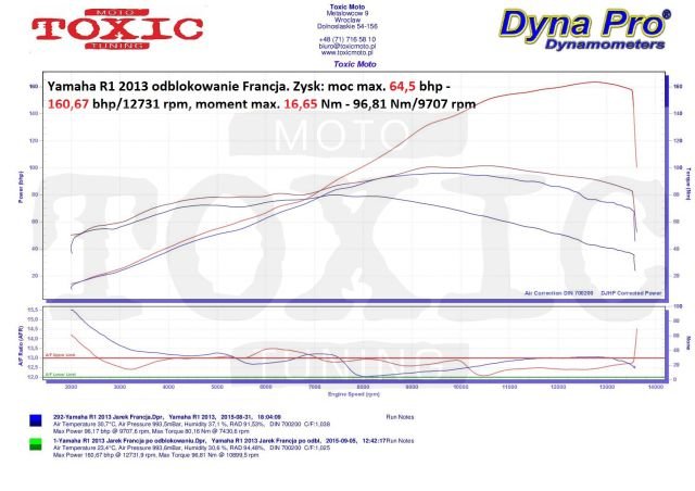 Odblokowanie Yamaha R1 2013 Francja chip tuning Toxic Moto