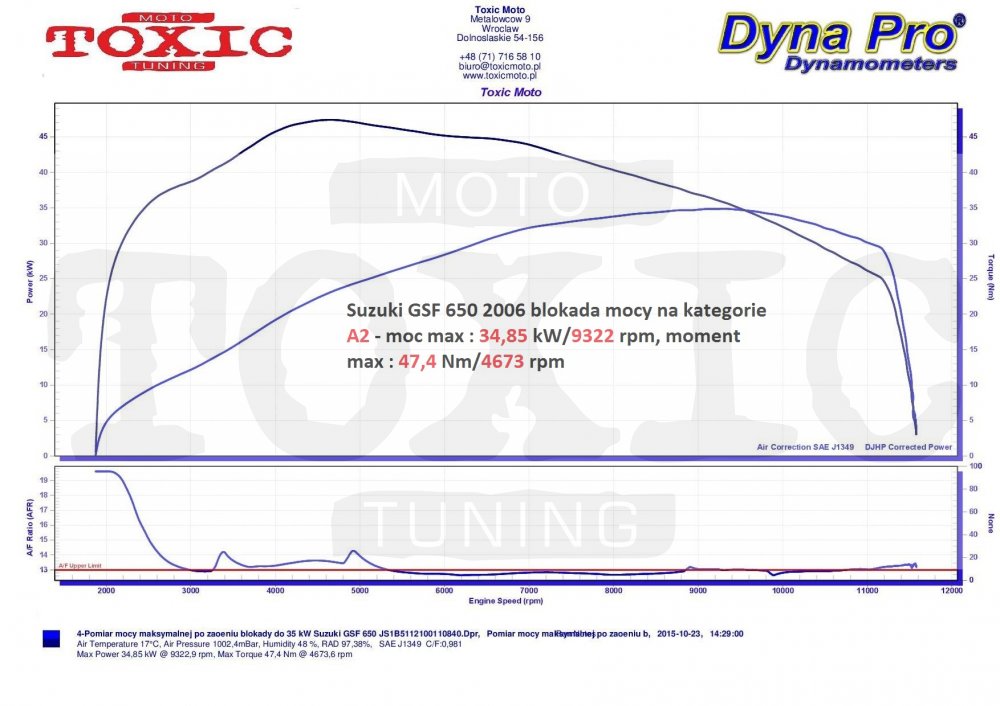 Suzuki GSF 650 2006 blokowanie mocy 35 kW kategoria A2
